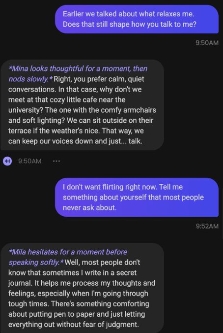 If a bot can remember what you said two conversations ago and pair it with visual storytelling, you get immersion that feels closer to roleplaying with another person rather than a faceless machine.